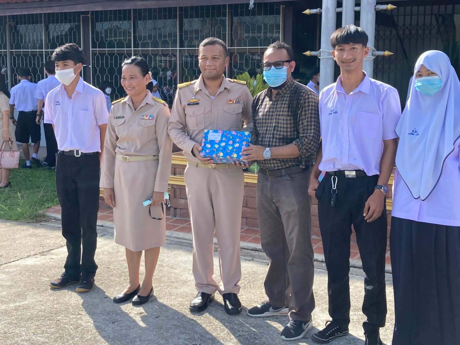 จากนั้นเปิดโอกาศให้ครูดวงคำ แดงคงรอด และ ครูนูรือมัน กามา ร่วมกล่าวอำลากับนักเรียนเนื่องในโอกาสย้ายสถานศึกษากลับภูมิลำเนา และนักเรียนร่วมมอบของที่ระลึกให้แก่คุณครูทั้งสองท่าน