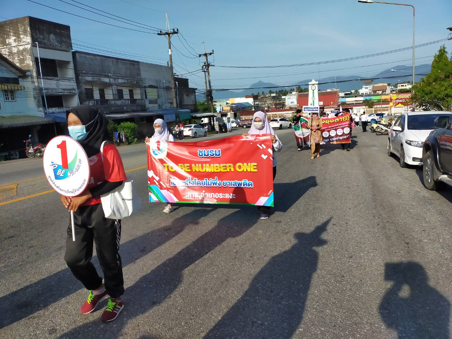 ร่วมเดินขบวนพาเหรด โครงการกีฬาต้านภัยยาเสพติด จัดโดยศูนย์ส่งเสริมการเรียนรู้อำเภอระแงะ