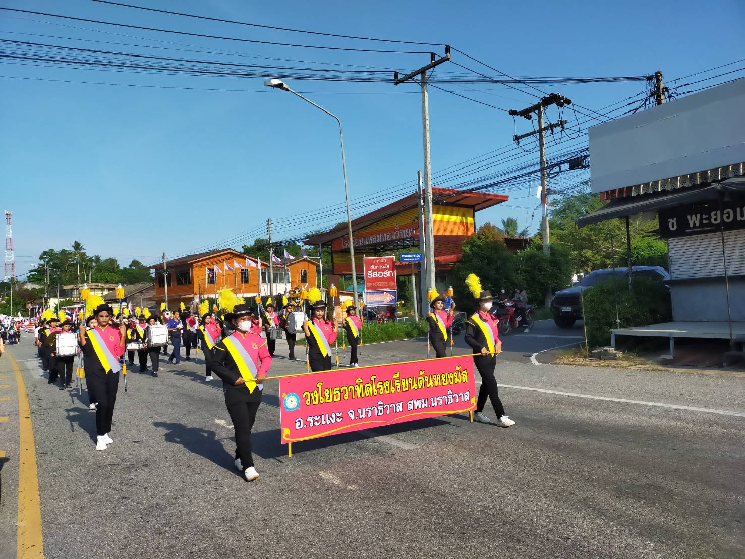 วันที่ 21 มิถุนายน 2566 ดร.อภิวรรณ ยอดมงคล ผู้อำนวยการโรงเรียนตันหยงมัส มอบหมายให้ ครูไพบูลย์ ยิ้มละหม้าย ครูผู้ฝึกซ้อมและควบคุมดูแลวงโยธวาทิต โรงเรียนตันหยงมัส ร่วมเดินขบวนพาเหรด โครงการกีฬาต้านภัยยาเสพติด จัดโดยศูนย์ส่งเสริมการเรียนรู้อำเภอระแงะ มีนักศึกษา คณะกรรมการฯลฯ ผู้ปกครอง กลุ่มประชาชนในอำเภอระแงะเข้าร่วมขบวนพาเหรดและแข่งขันกีฬา โดยมีนายวิมุติ อำนักมณี อำเภอระแงะ มาเป็นประธานในพิธีเปิด |