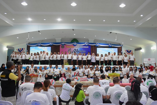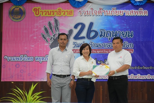 26 มิถุนายน 2566 เวลา 10.00 น. ดร.อภิวรรณ ยอดมงคล ผู้อำนวยการโรงเรียนตันหยงมัส พร้อมด้วย นายนิอัมรัน แวสามะ หัวหน้าฝ่ายบริหารกิจการนักเรียน เข้าร่วมรับเกียรติบัตรผู้สนับสนุนการขับเคลื่อนการดำเนินงานโครงการสถานศึกษาสีขาวปลอดยาเสพติดและอบายมุข ปีการศึกษา 2565 ในกิจกรรมรณรงค์วันต่อต้านยาเสพติดโลก (26 มิถุนายน 2566) ทั้งนี้ มีผู้บริหารสถานศึกษาและครูโรงเรียนในสังกัด สพม.นราธิวาส เข้ารับเกียรติบัตรโครงการสถานศึกษาสีขาวปลอดยาเสพติและอบายมุข ดีเด่น ระดับเงิน ปีการศึกษา 2565 จำนวน 4 แห่ง ประกอบด้วย โรงเรียนตันหยงมัส, โรงเรียนตากใบ, โรงเรียนบูกิตประชาอุปถัมภ์ และโรงเรียนศรีวารินทร์ โดยมีนายสนั่น พงษ์อักษร ผู้ว่าราชการจังหวัดนราธิวาส เป็นประธานในพิธีเปิดกิจกรรม ณ ห้องประชุมสำนักงานคณะกรรมการอิสลามประจำจังหวัดนราธิวาส |