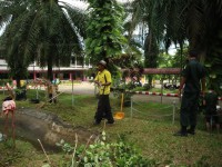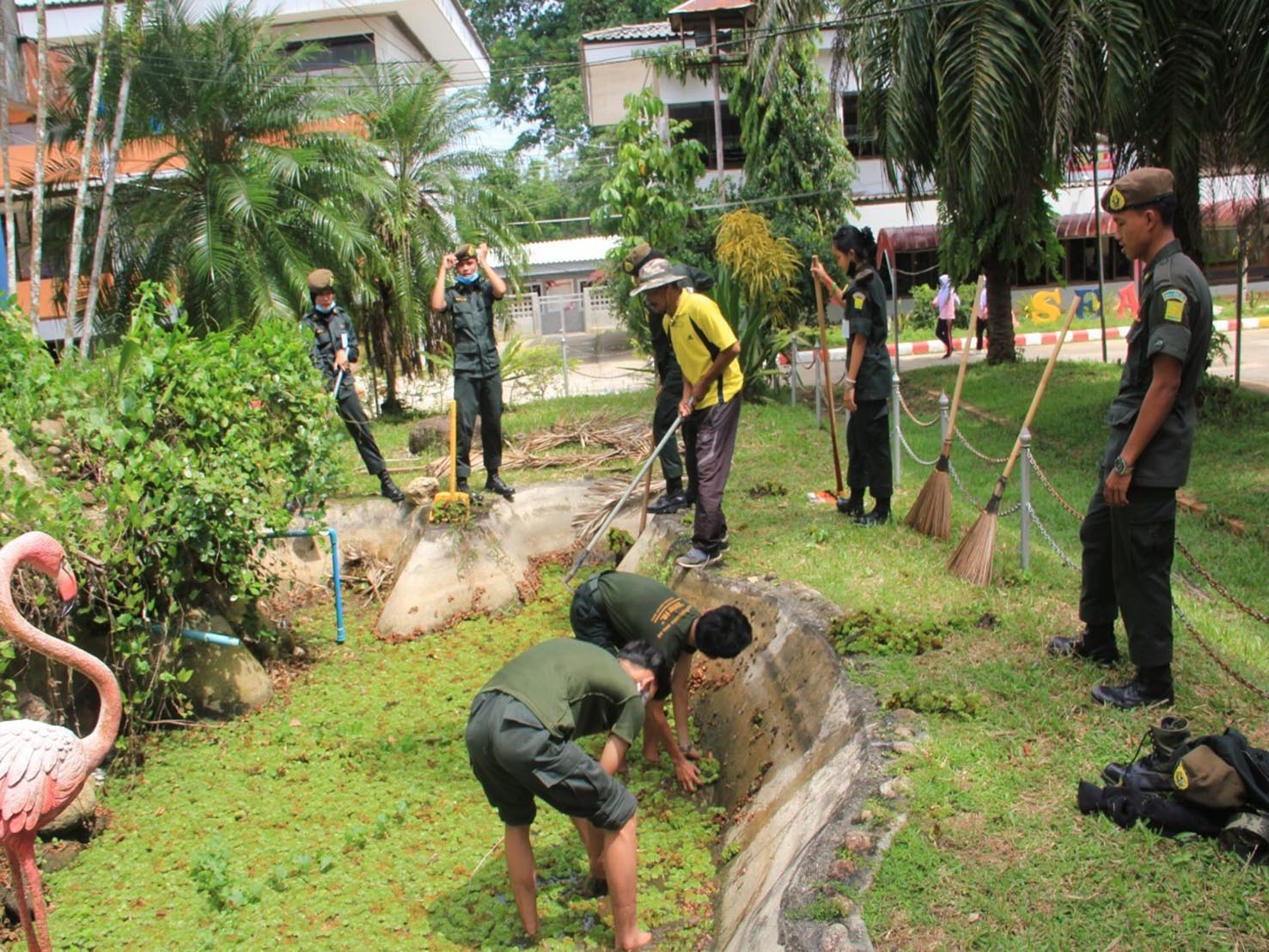 นักศึกษาวิชาทหารร่วมกันปฏิบัติภารกิจรด.จิตอาสา ในการพัฒนา และทำความสะอาดแหล่งเรียนรู้ของสถานศึกษา